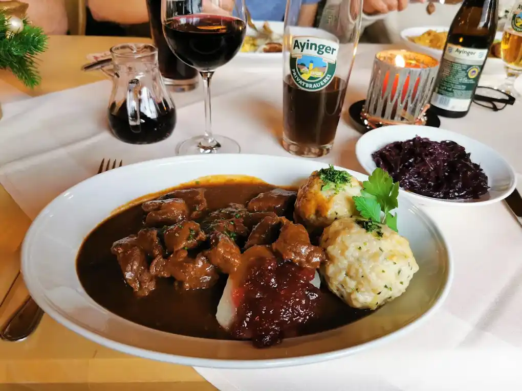 Whether you choose to dine in our charming, rustic Gaststuben or relax in our idyllic beer garden under the chestnut trees, you’ll find the perfect spot for any occasion. From hearty classics like schnitzel and fish specialties to delicious homemade dumplings and “Mehlspeisen,” our food is all about quality and authentic flavor. Complement your meal with a refreshing beer from renowned local breweries like Schneider and Ayinger.
