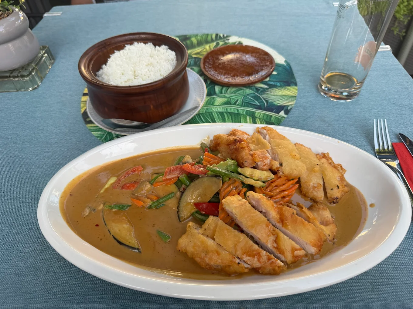 Bò cà ri sch mit Marktgemüse in roter Currysauce sch mit Marktgemüse in roter Currysauce
