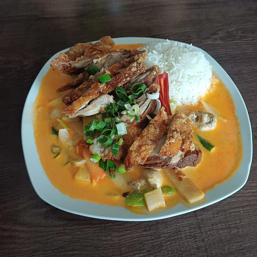 Knusprige Ente Thai-Rot-Curry Mit frischem gemüse und kokosmilch in thai-rot-curry sauce Mit frischem gemüse und kokosmilch in thai-rot-curry sauce