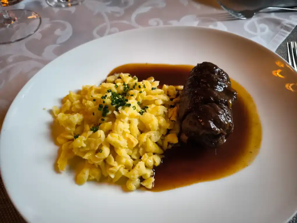 Our passion is serving creative, high-quality Alpian cuisine. We artfully prepare traditional dishes with a modern interpretation, always with a commitment to regional and biological responsibility. From our own garden vegetables to eggs from happy local chickens, we prioritize fresh, nearby ingredients. Whether you choose a dish from our daily menu or explore our facetious wine selection—featuring excellent German drops—you are in for a treat. For a more rustic pleasure, enjoy one of our four freshly tapped beers in our historic garden, a liberty we’ve cherished since 1867.