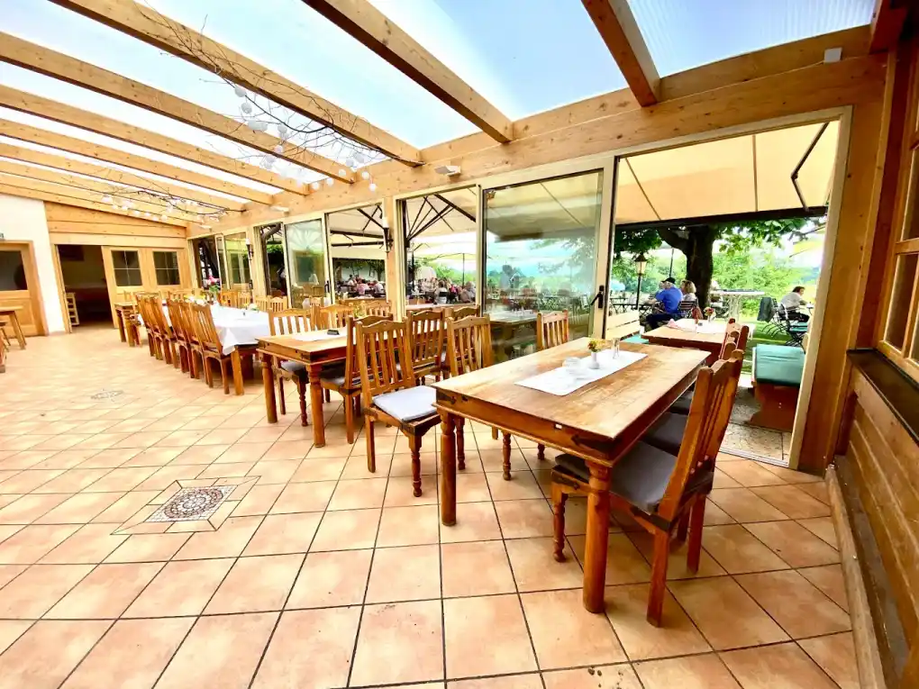 Breathtaking Setting: Enjoy panoramic Alpine views from our spacious beer garden (open April–October, seats up to 400)—perfect for sunny lunches, romantic sunsets, or lively gatherings.