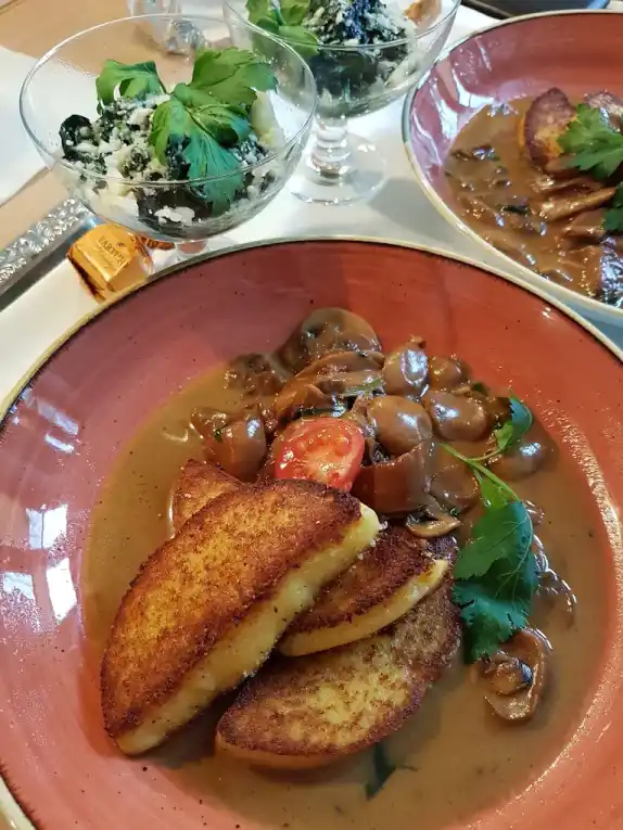 Our menu is a love letter to South Tyrol, featuring regional specialties like Eisacktaler Schlutzer and hearty Kaspressknödel. We believe in “ehrliche, bodenständige aber auch detailverliebte Küche” – honest, down-to-earth cooking with a loving eye for detail. Whether you are joining us for lunch or dinner, every dish is prepared to bring the taste of the Alps to your table.